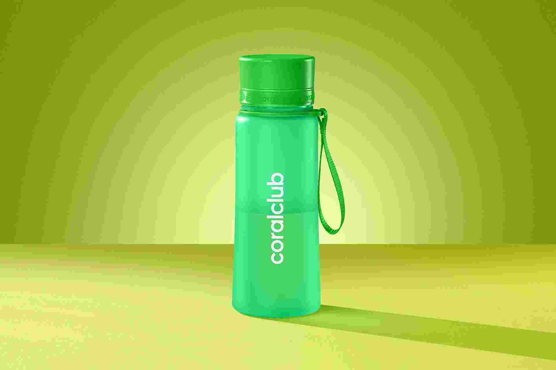 Прочная, экологичная и легкая бутылка Coral Club прекрасно подойдет для поездок, прогулок или занятий спортом.